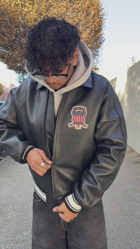 More than 40 years in the making, this original and iconic Avirex bomber jacket is designed in 100% French lamb leather.